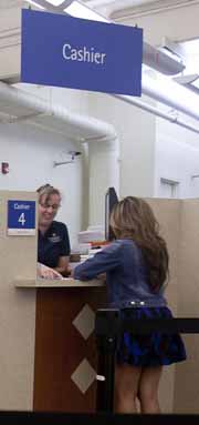 Student at Cashiering Services WindowCashiering Services accepts student fee payments, disburses scholarship and alternative loan checks, processes department deposits, and issues the SJSU Student ID (Tower) Card.